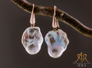 Elegante Ohrringe mit grossen speziell schön geformten Feuerball Barockperlen, die an eine fliegende Sternschnuppe erinnern.
