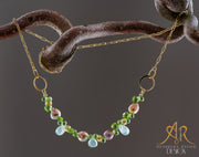 Halskette mit grossen Barock Perlen Peridot und Prehnit Tropfen